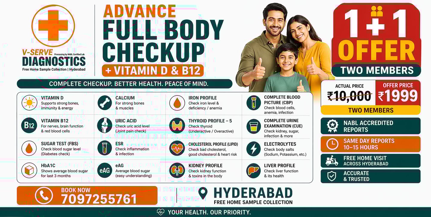 If you are searching for “full body checkup near me”, “blood test at home Hyderabad”, or “affordable health checkup packages”, then this offer is exactly what you need.