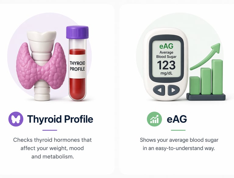 HbA1c shows your average blood sugar for the last 2–3 months. It helps in diagnosing and managing diabetes more accurately.