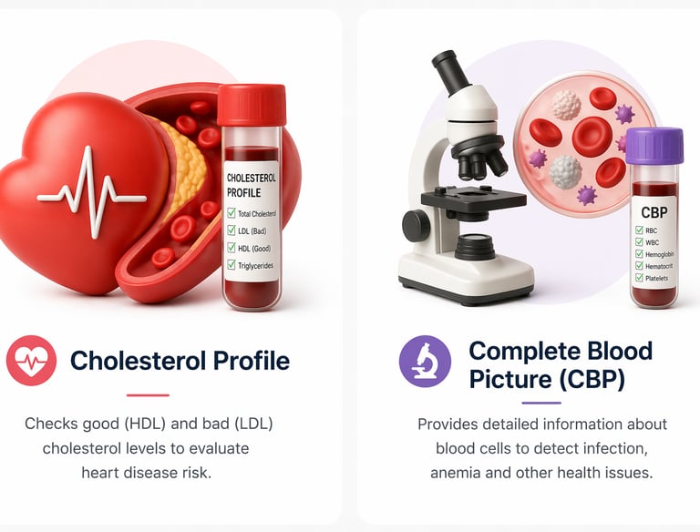 Lipid profile checks your cholesterol levels including good and bad cholesterol. It helps assess heart health and risk of blockage.