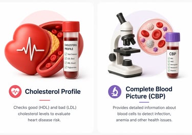 Lipid profile checks your cholesterol levels including good and bad cholesterol. It helps assess heart health and risk of blockage.