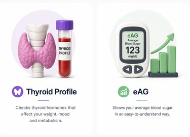 HbA1c shows your average blood sugar for the last 2–3 months. It helps in diagnosing and managing diabetes more accurately.