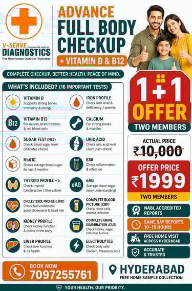 If you are searching for “full body checkup near me”, “blood test at home Hyderabad”, or “affordable health checkup packages”, then this offer is exactly what you need.