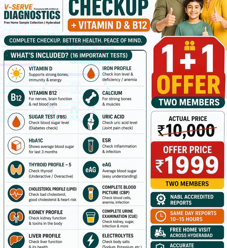 Introducing the Advance Full Body Checkup + Vitamin D & B12 package — a complete health screening designed for modern families.