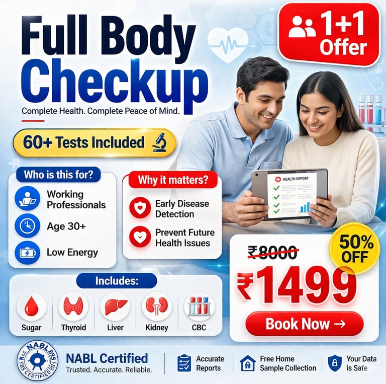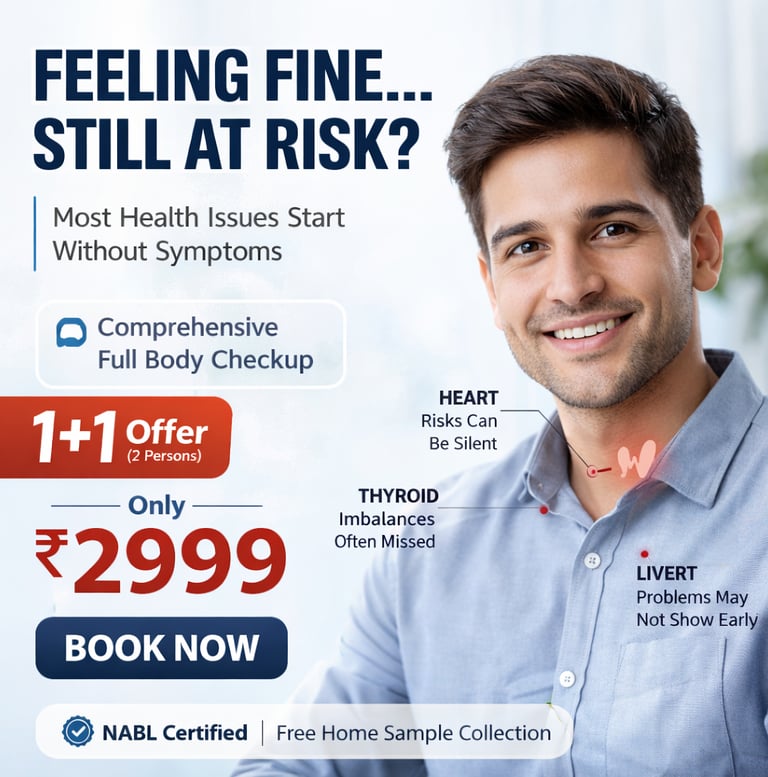 Choose from our NABL-certified health packages starting at just ₹1499 for two people. Get comprehensive testing for your whole family with the convenience of free home sample collection across Hyderabad.